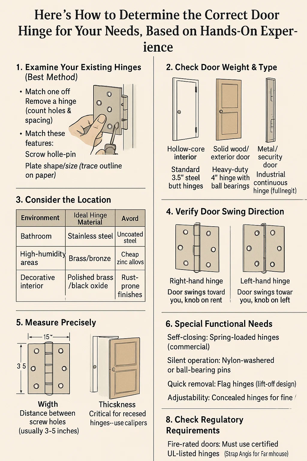 Aquí se explica cómo determinar la correcta bisagra de puerta para sus necesidades, basado en la experiencia práctica: