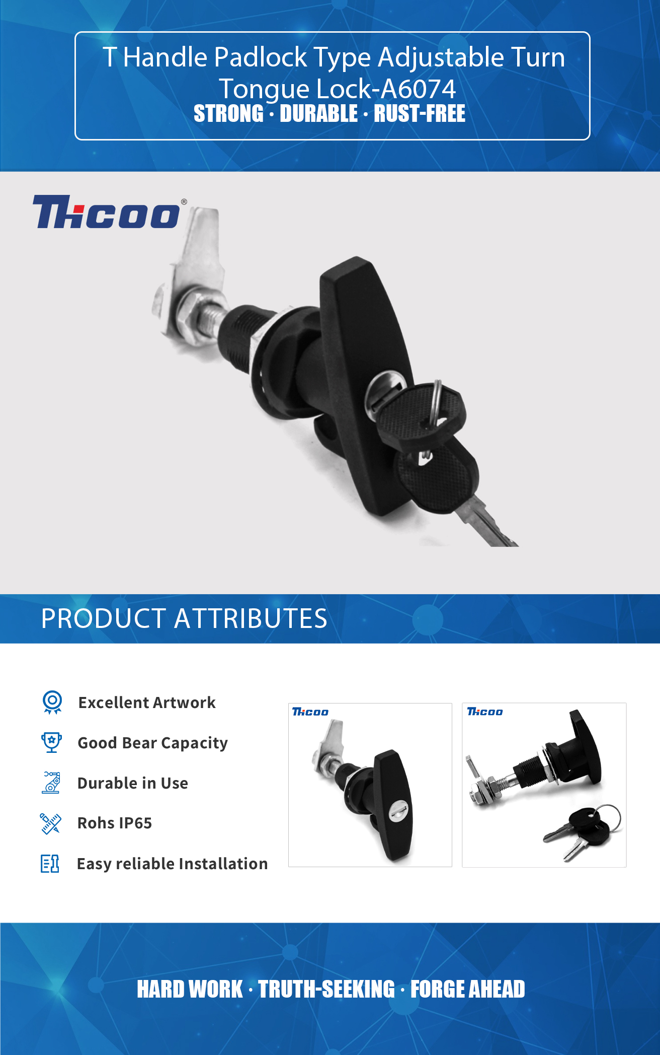 Hogar / Producto / Cerrar / Bloqueo de leva / Tipo de candado con manija en T Cerradura de lengüeta de giro ajustable-A6074